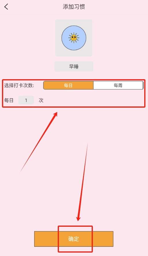 3、选好每天的打卡次数,确认没问题后点击 “确定”,就能成功添加习惯了。