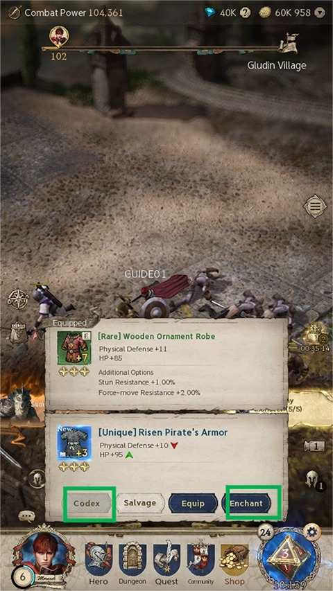 2. 以绿色箭头标注的是更为优质的装备,属性较差的装备能够通过分解来获取经验与货币。