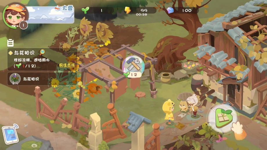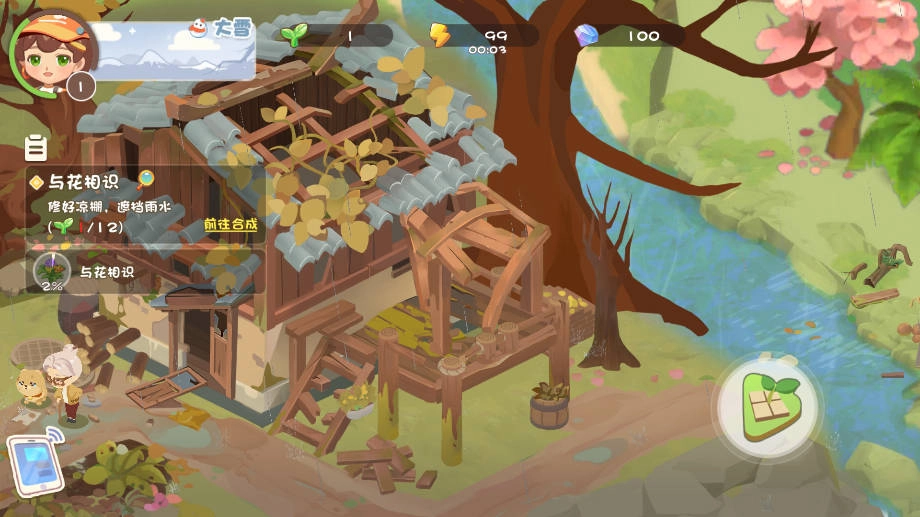 3、点击合成更多更高级的物品,以此获取树叶,用于改造池塘、修理汽车以及重整房屋,进而减少碳排放。