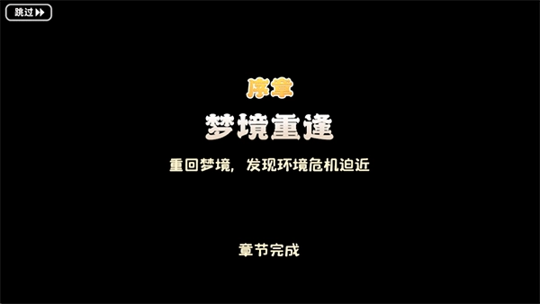6、完成序章的梦境重逢后,点击跳过,正式进入第一章开启游戏。
