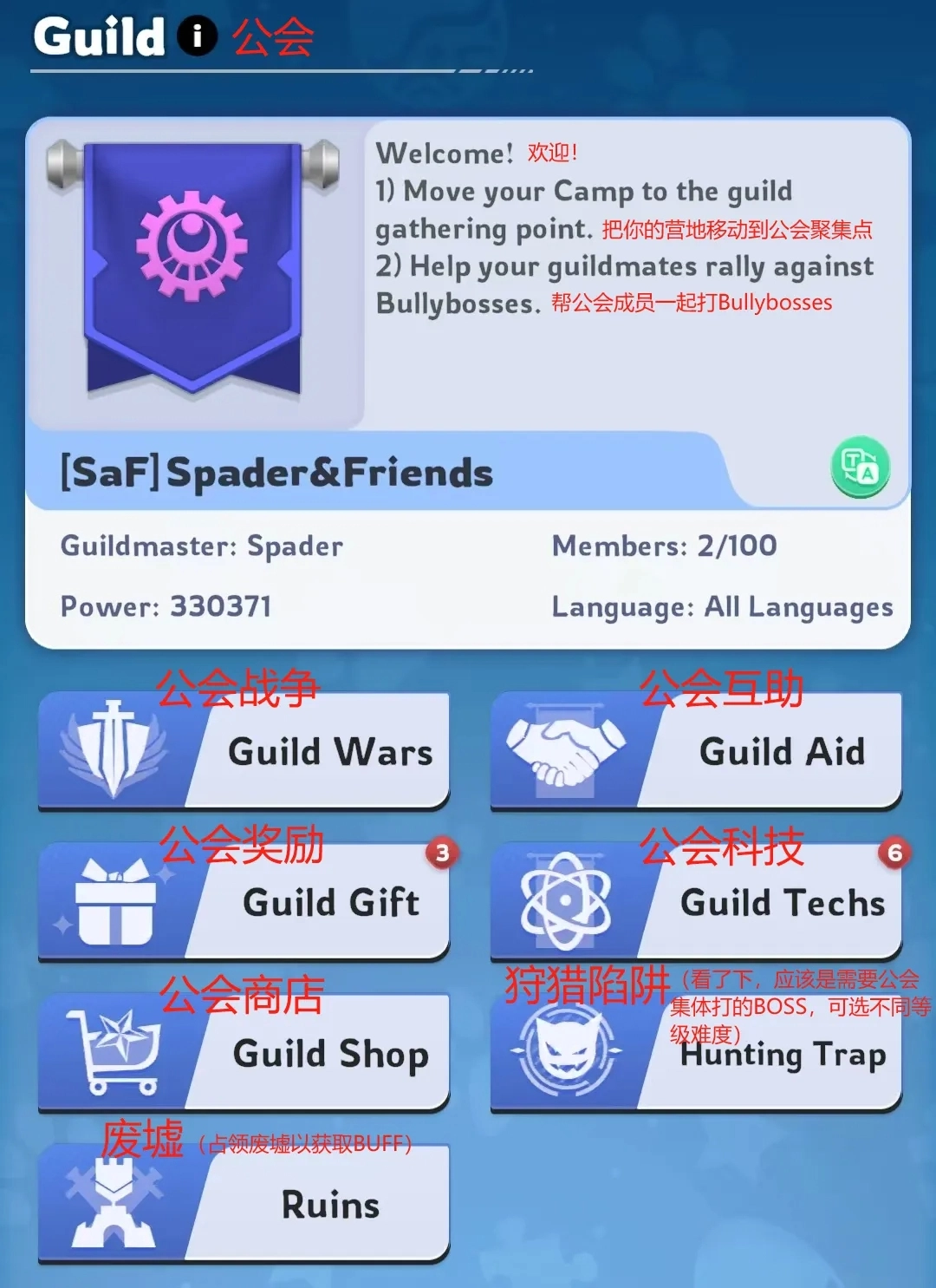 4、从公会菜单分析,PvE和PvP这类需要玩家协同完成的内容,应该都存在;此外,公告中要求玩家将营地迁至公会聚集点,这或许暗示着帕尔蒙生存公会团战具备沙盘策略方面的要素。