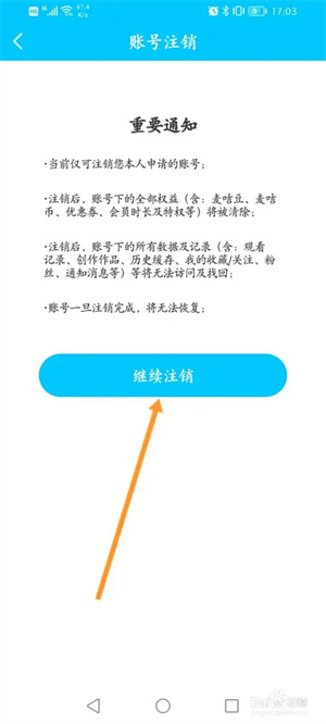 4、找到继续注销即可。