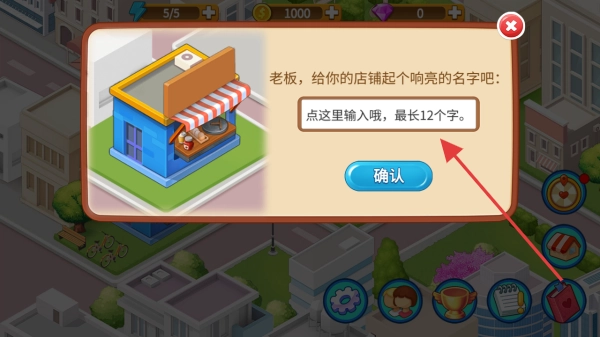 2、给店铺起名最长12字 ,输入后点确认,完成店铺创建,开启经营。