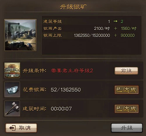 为什么要把银矿和民居放在一块儿说呢?原因在于这两种建筑的功能极为相似。银矿负责产出银子,民居则产出民兵,它们的产出都相当稳定。无论你主要偏好发展经济种田,还是热衷于掠夺他人这种具有侵略性的玩法,都应当尽可能将银矿和民居升级到满级。要是你追求的是极限收益,那就务必尽可能维持矿稿和征兵令的存在状态,因为它们能直接提高银矿和民居的基础产量。关键是,这两种物品价格低廉,而且参与活动就能获取到!