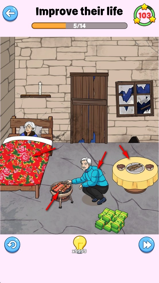 《Brainy Prankster游戏》采用的是在国内流行许久的图像解谜玩法。玩家得开动脑筋,通过一系列操作完成关卡任务,这样才算顺利通关。像游戏里花光所有钱、修缮房屋、全家带娃这类关卡,在国内小游戏市场都是常见的谜题。如今,国内图像解谜玩法已朝着恐怖题材、追逐热门梗等更高维度发展,而这种较为常规的解谜玩法此时终于传播到了海外,成功吸引了更多地区玩家的目光。