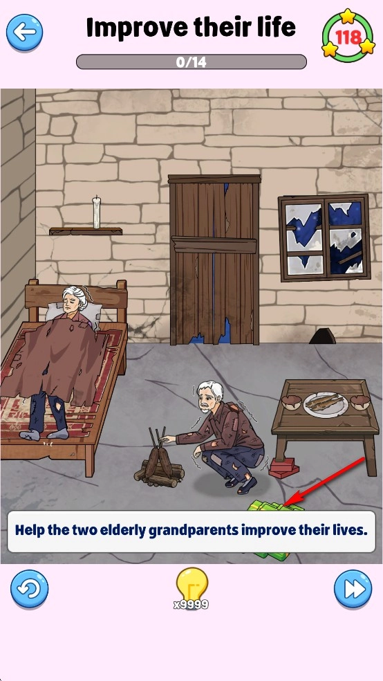 我们得花钱,让两位老人过上富足的生活,只需把钱拖到相应物品上就行。