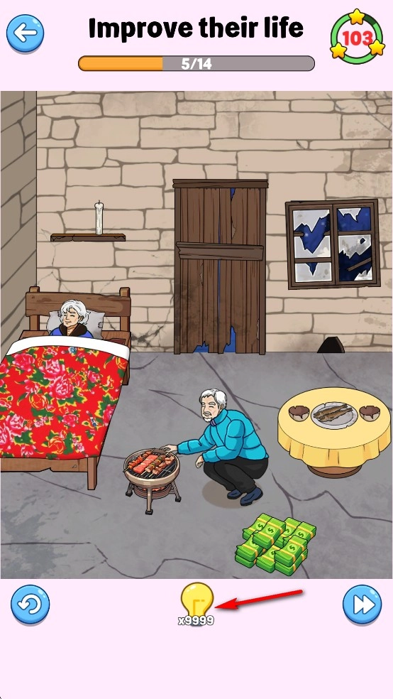 要是不清楚接下来该怎么做,点击灯泡就能获取提示。