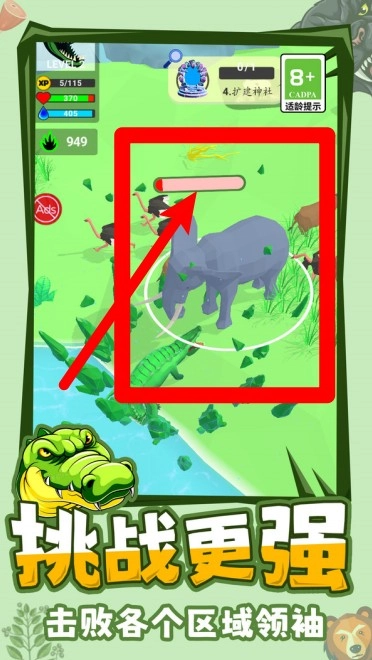 2.区域挑战时将面对强大动物首领,需注意对方血量与攻击节奏,胜利后可占领新区域持续进化。