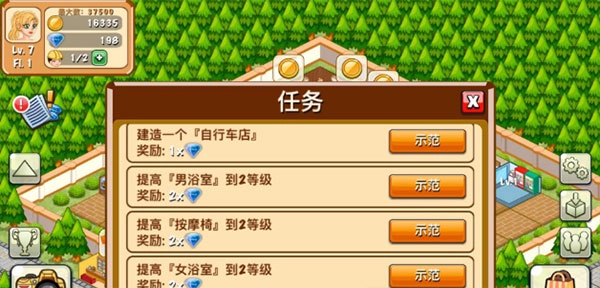 4、完成任务。任务栏中有不少任务都很值得去做,像建造或升级某些设施,就能获得1 - 2个数量不等的钻石,然后用这些钻石去购买金币即可。