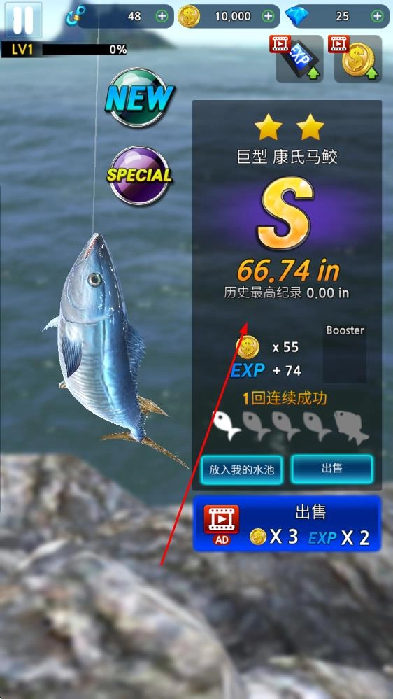 3、只要成功钓起珍稀怪鱼,或是完成特定任务,就能收获金币等丰厚奖励。利用这些奖励,可解锁更高级的渔具,进而挑战难度更高的海域,钓到更多神秘海鱼,一步步在钓鱼领域开拓出属于自己的一片天地。