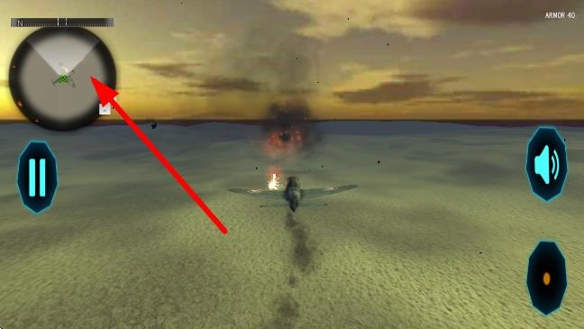 3、你依据左上角雷达,定位敌方目标,驾驶战机前往,准备攻击,推进战斗进程。