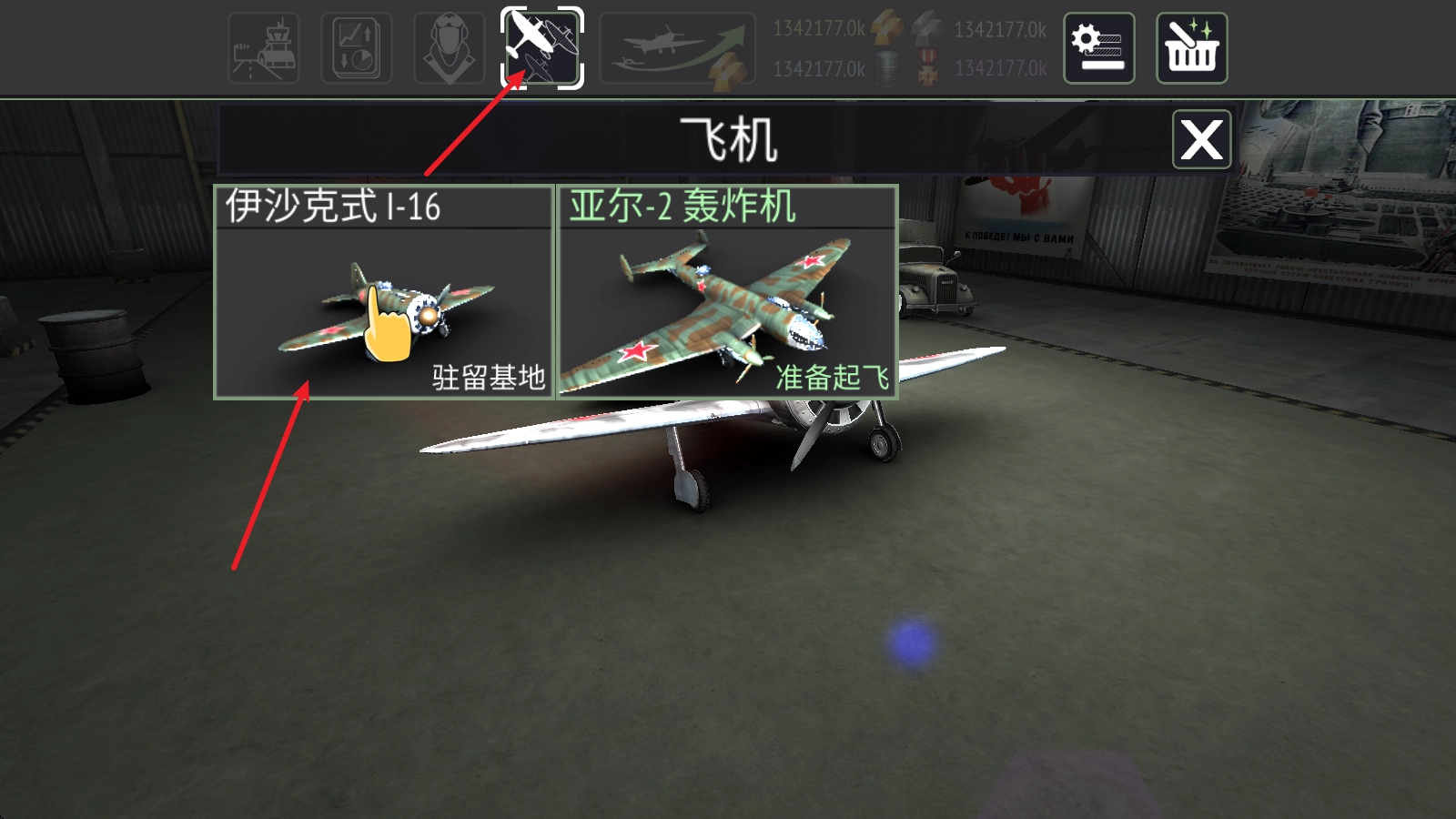 1、首先我们需要在战斗前,进入飞机基地,选择驻留基地的飞机。