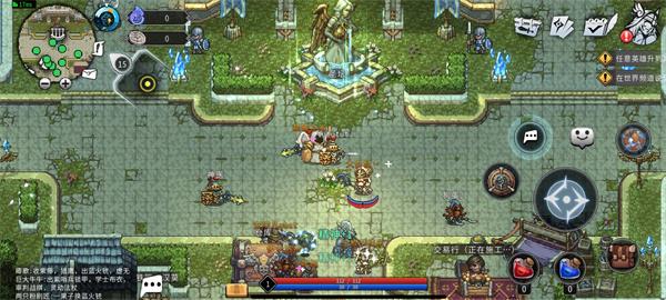 3、进入游戏后,左边控制角色的移动,而右边则是攻击、背包等按钮;