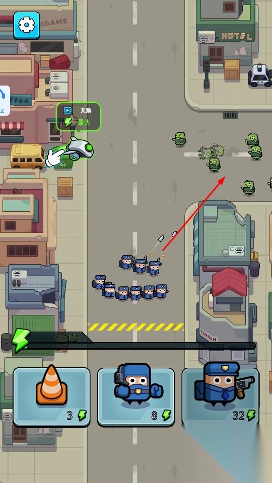 3、在战斗过程中赢得奖励,借此升级兵种、解锁技能,以抵御更多波次的僵尸进攻,同时扩大防御范围,守护城市的安全。
