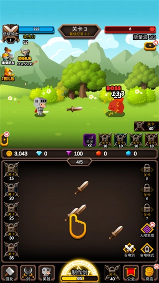 把自动制造出来的剑放置到合成面板,接着把这些剑拖移到相同的剑之上,随后进行合成,从而打造出更为坚固的剑。凭借无尽的合成操作,召唤出愈发强大的宝剑,以此战胜即将来袭的敌人。