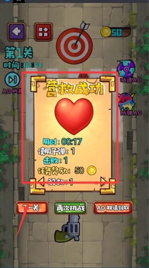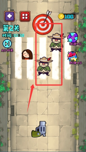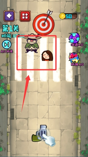 1. 进入关卡后,首先留意匪徒与人质的位置分布情况,寻找到安全的发射角度后,再展开射击。