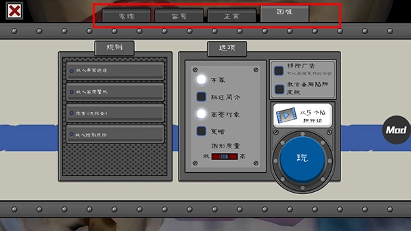 2、于主界面点击“玩”,便会跳转至难度选择页面。此外,玩家能够开启字幕,也能对游戏亮度进行调整。