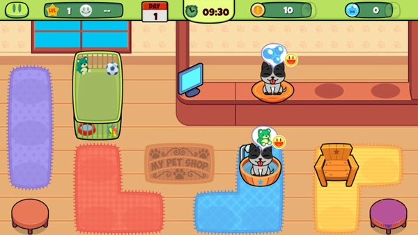 1. 在宠物店中,每只宠物的右侧都设有一个心情标记。当为某只宠物洗澡时,其他宠物会待在等待区,它们的头顶还会显示出想要的玩具或物品。