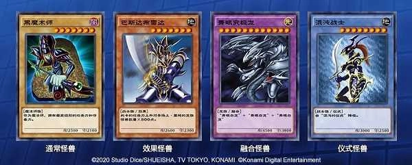 怪兽卡数量非常丰富,除了擅长战斗、拥有高攻击力和守备力的怪兽以外,还存在数值较低,但能发挥各种特殊效果的怪兽。下面就先向大家介绍一下4种基础的怪兽卡。