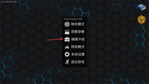 1、当进入游戏王ygopro2游戏之后,点击位于右上角的子菜单。