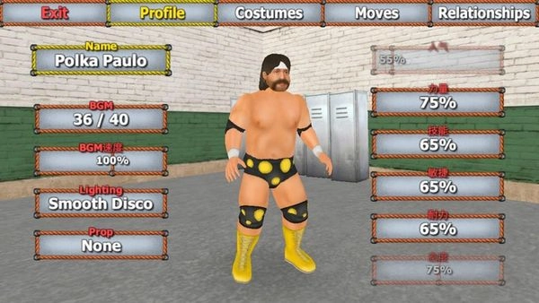 3、支持自定义人物形象,设计出一位别具一格的摔跤明星吧!