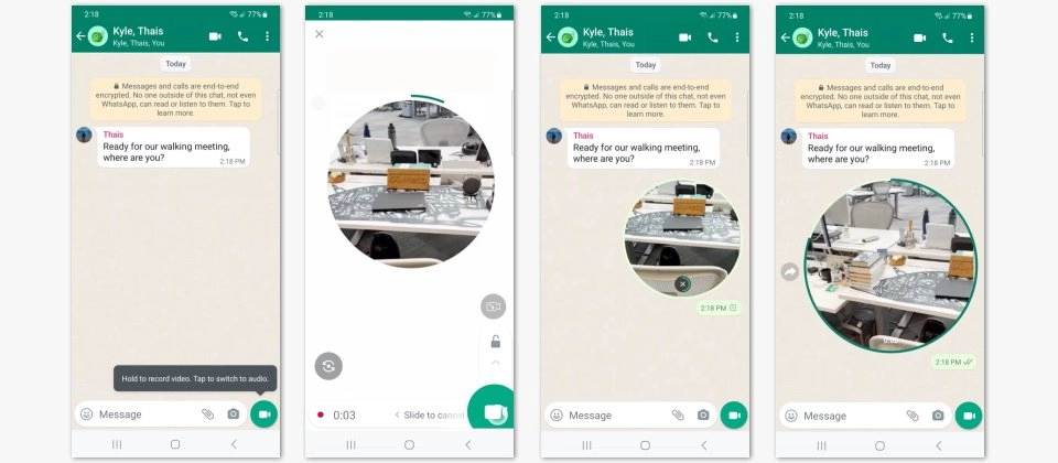 在使用WhatsApp聊天时,不会显示“对方正在输入...”的提示;而微信聊天时,当对方输入内容,屏幕上方会出现“对方正在输入..”的提示,但无法看到对方是否已读消息。