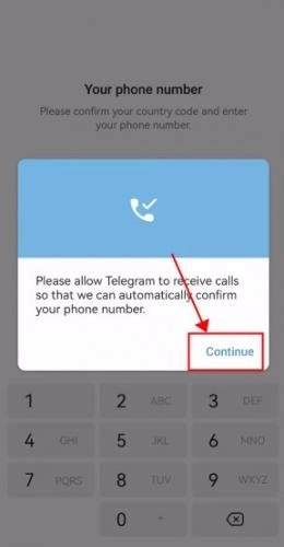 打开 Telegram 应用,然后输入您的手机号码。