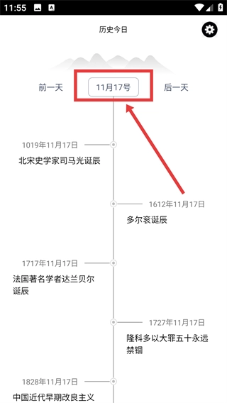 在历史今日页面,点击【11月17日】,进入日期选择界面,就能挑选其他日期来查看对应的历史事件。