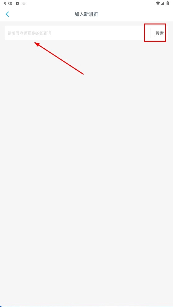 在输入框中填写老师提供的班群号,接着点击【搜索】功能按钮,即可完成加入班群的操作。