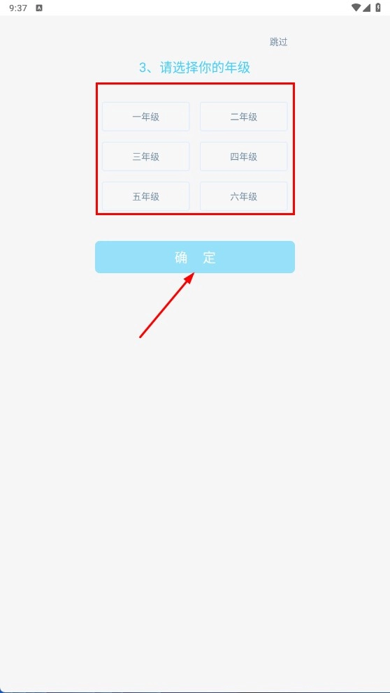 请先选择对应的年级(范围为一年级到六年级),随后点击【确定】功能按钮。