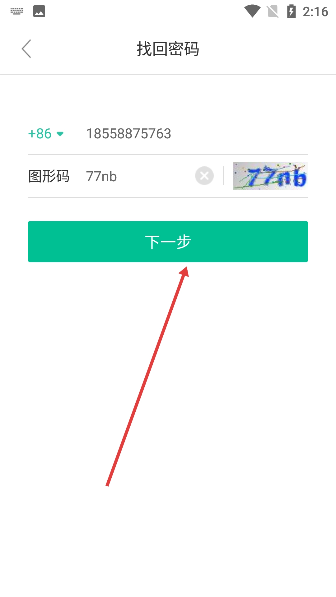 在找回密码的输入界面填写【手机号码】和【图形验证码】。