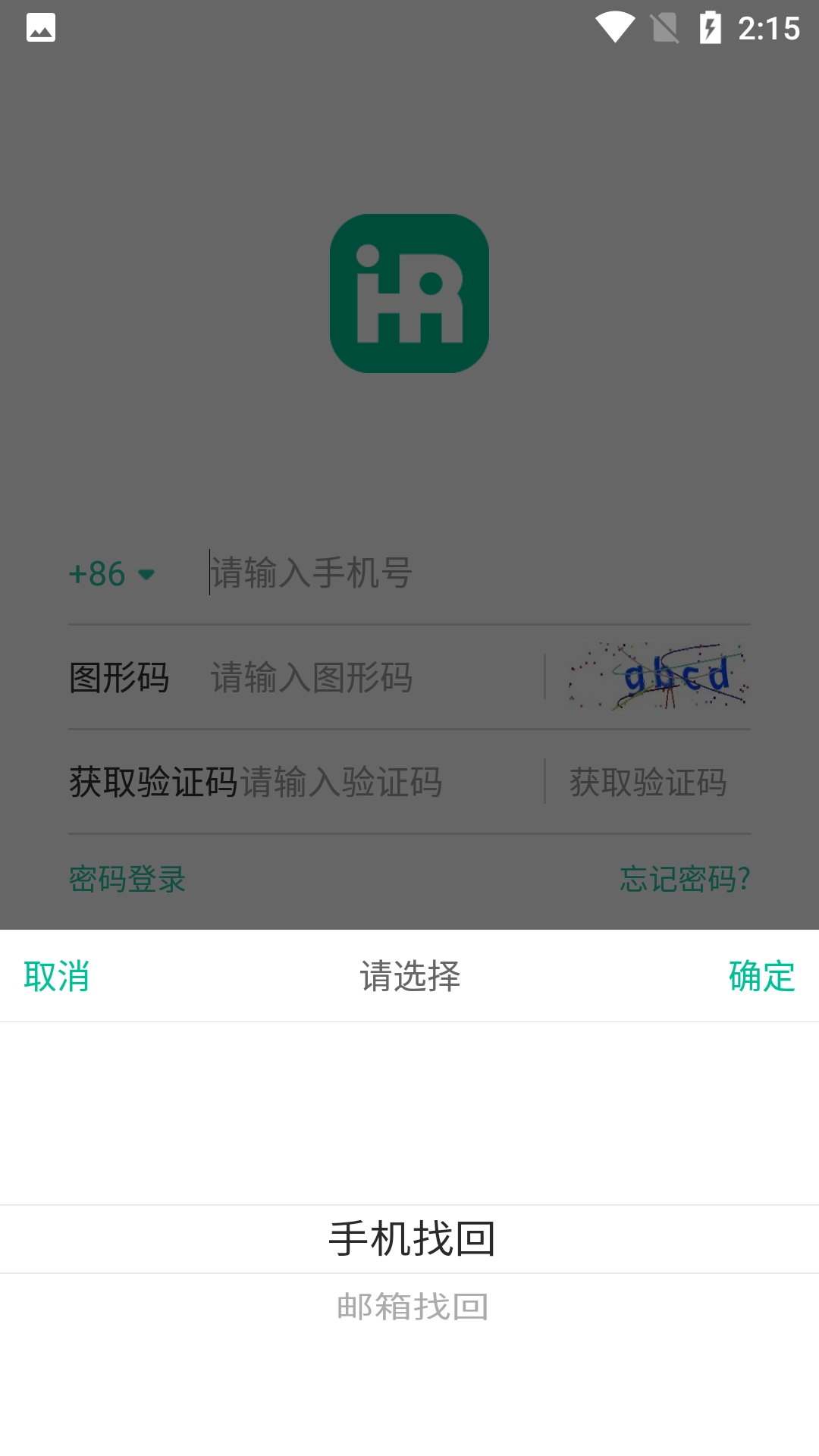 在找回密码的选择界面中,点击【手机找回】选项,即可进入找回密码的输入页面。