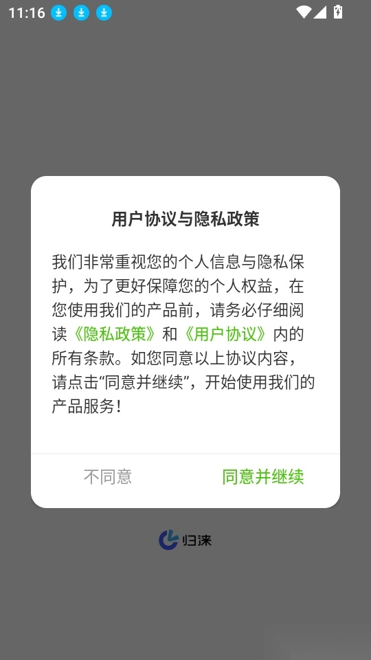 首先打开应用点击“同意并继续”按钮来进入中。