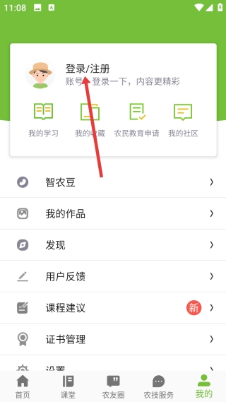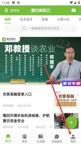 在湘农科教云平台上,您可以通过点击首页底部的【我的】选项,进入到个人中心的功能操作界面。