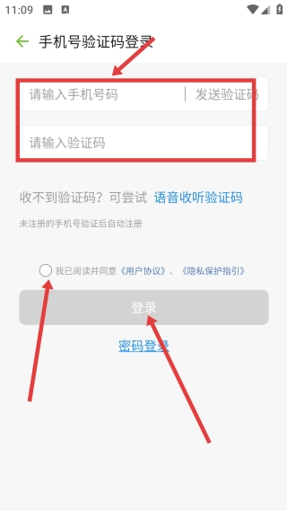 在登录页面,输入手机号、填写验证码并勾选相关协议后,点击“登录”按钮,就能完成账号登录流程。