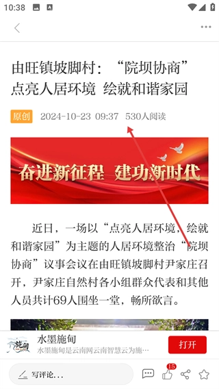 在文章详情页面可阅读关于乡村的文章内容。