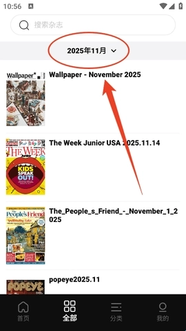 在这里选择最新的时间月份,就能找到所有最新杂志内容了。