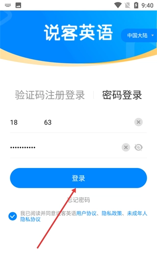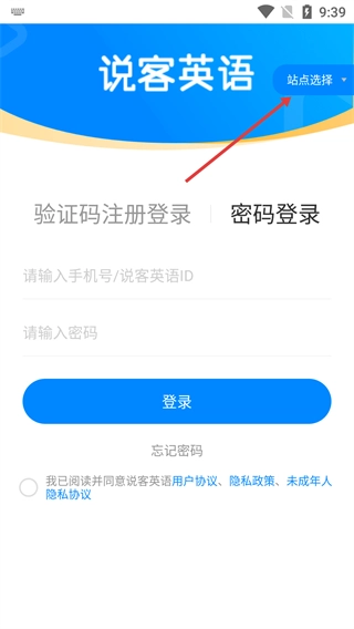 勾选【我已阅读并同意说客英语用户协议、隐私政策、未成年人隐私协议】相关选项。