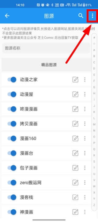 进入图源界面,点击右上角的三个点。