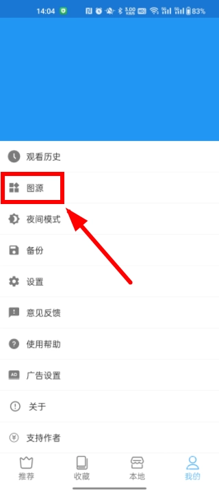 在“我的”界面,点击“打开图源”。