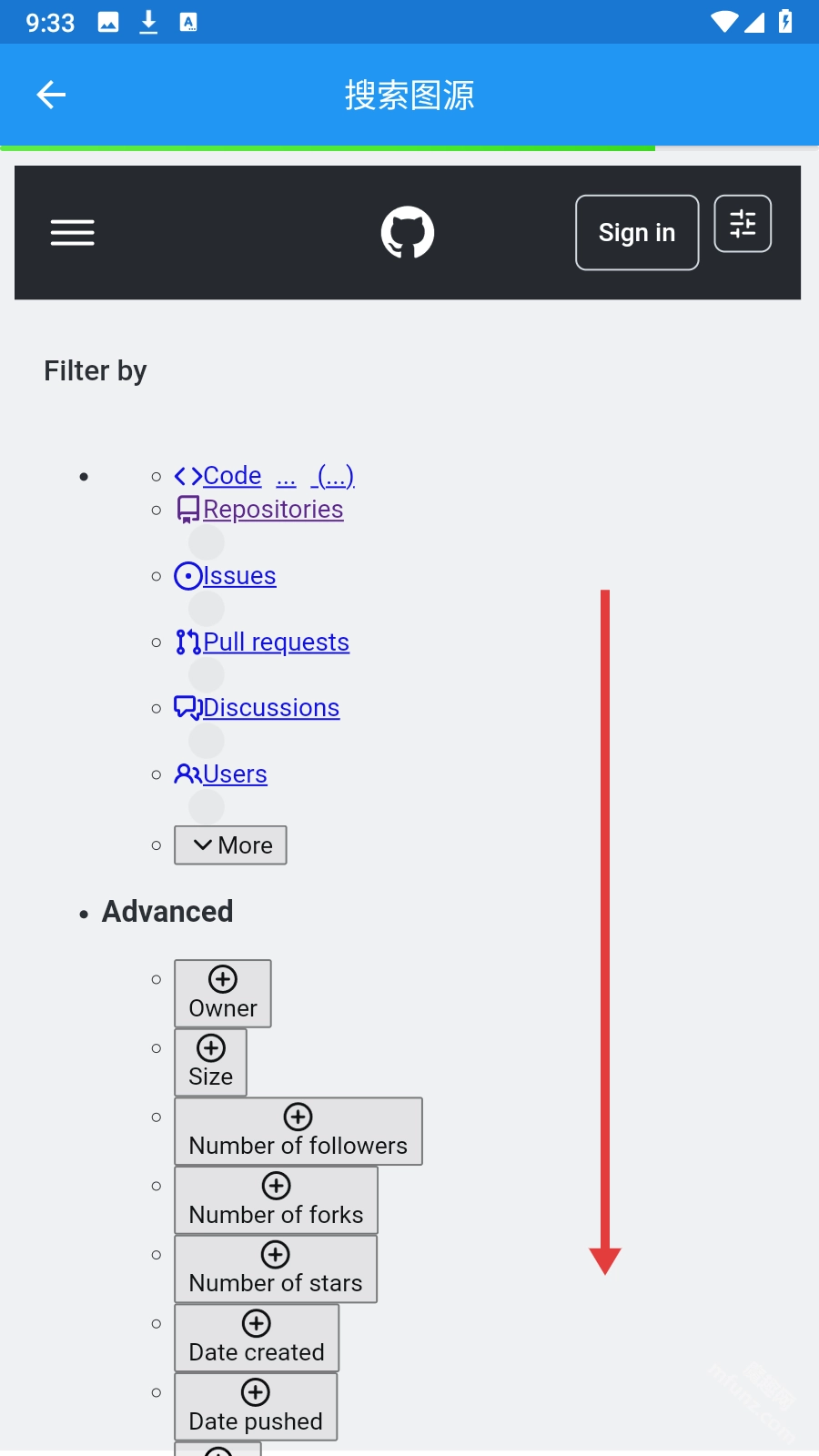 在搜索页面滑屏查找想要的图源。