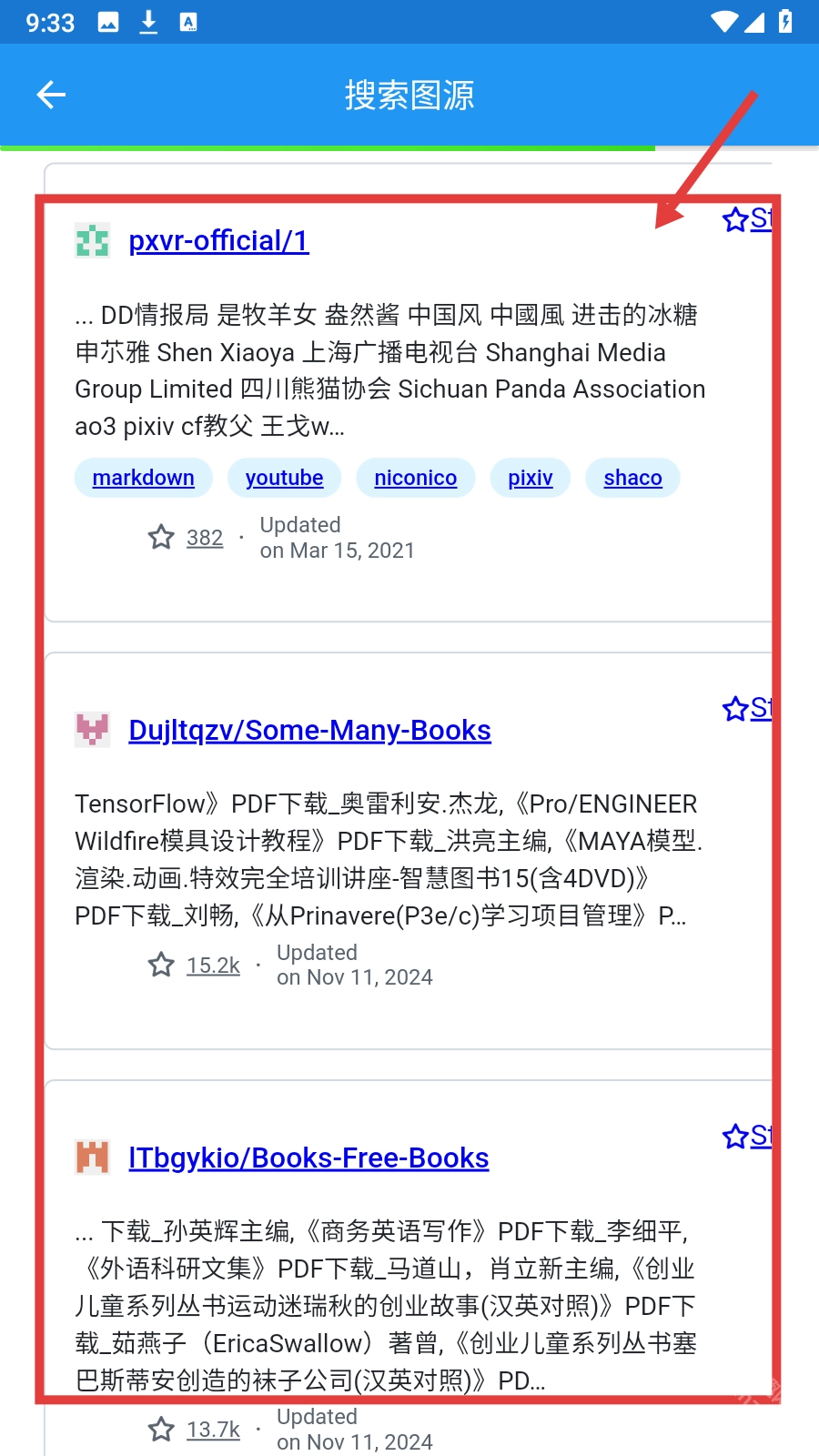 选择感兴趣的图源项目,查看资源详情。