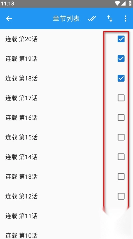 勾选想的章节,点击右下角的勾号即可。