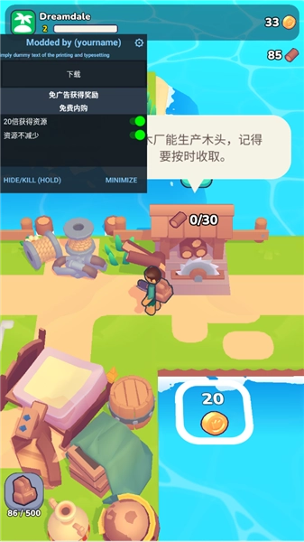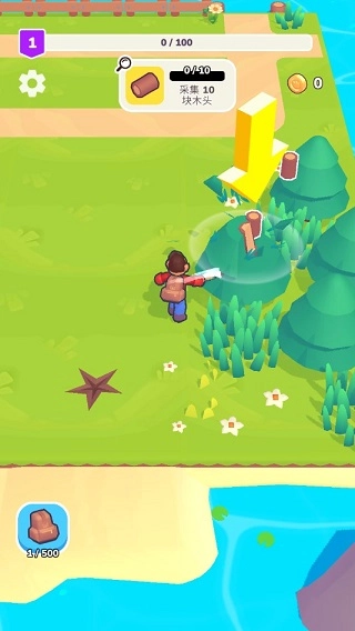 一位足智多谋的英雄,开局时除了一个空荡荡的背包和最信赖的斧头外一无所有。你得努力伐木、挖矿、采集各种资源,要么用来建造新的建筑物,要么拿到市场上去换取金币和钻石。金币可以用来升级自己的装备与建筑物,你也能选择继续开拓地图,寻找更多不同类型的资源。