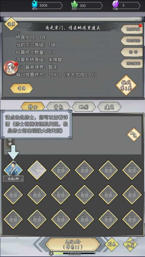 4、点击修士可以查看详细信息,每个修士都拥有随机的天赋,有极品天赋和更强大的天赋。