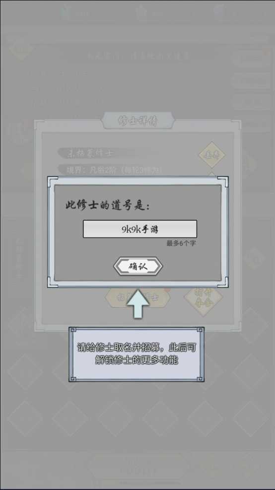 5、为自己的修士取一个道号,并招募该修士。