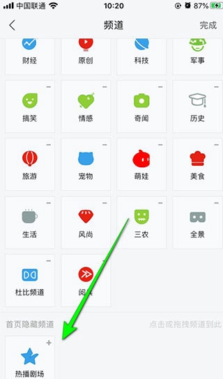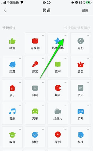 点击频道右上角“-”是删除或者隐藏频道;