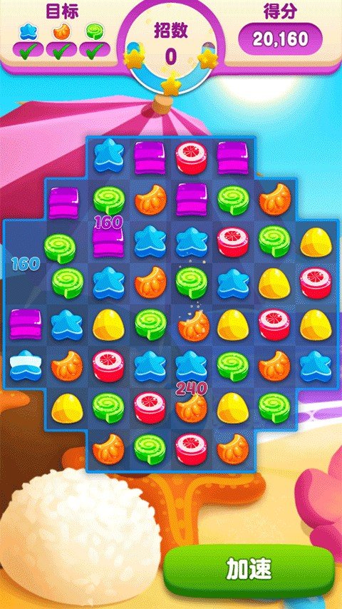 2、根据每一关的要求,收集指定数量的糖果,才能顺利解锁下一个关卡。