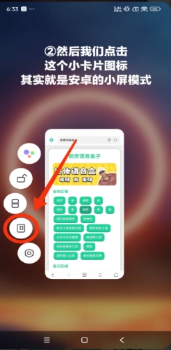 然后我们点击这个小卡片图标,它对应的其实就是安卓系统里的小屏模式。
