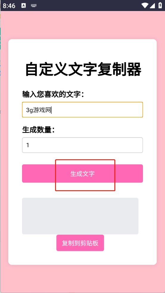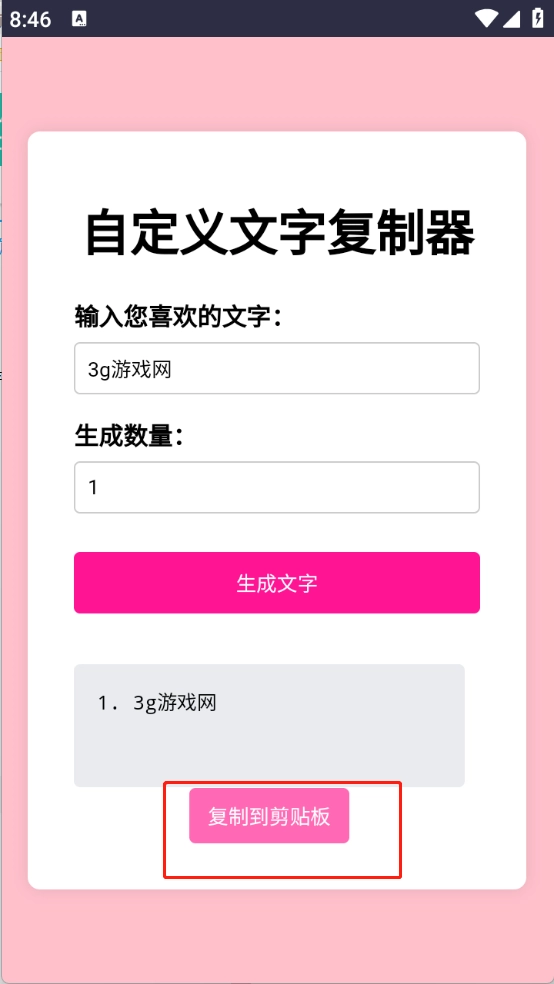 可以一键把用户输入的文字以及按指定数量生成的内容复制到剪贴板。